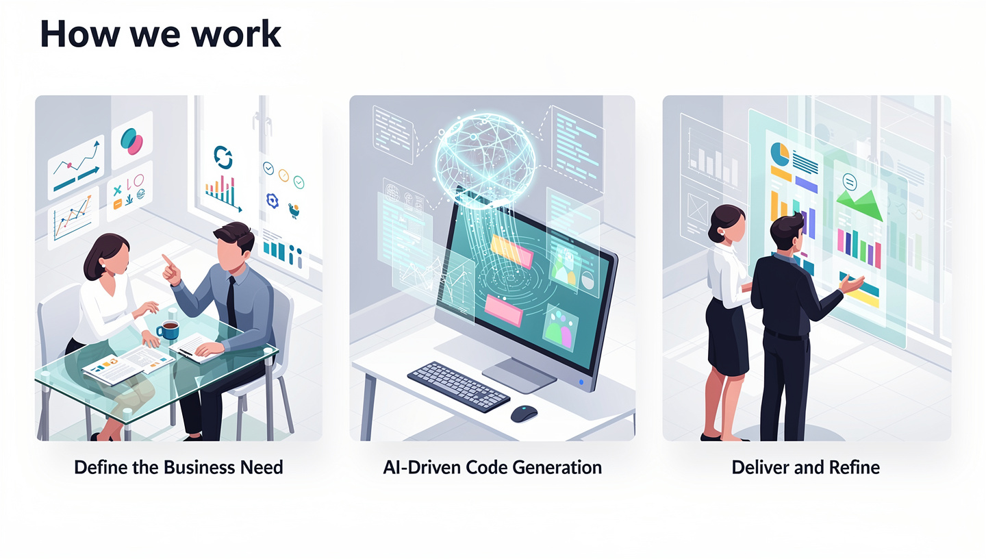 Autamme organisaatioita ratkaisemaan tarkkaan rajattuja ohjelmistohaasteita AI-pohjaisen koodin generoinnin avulla.